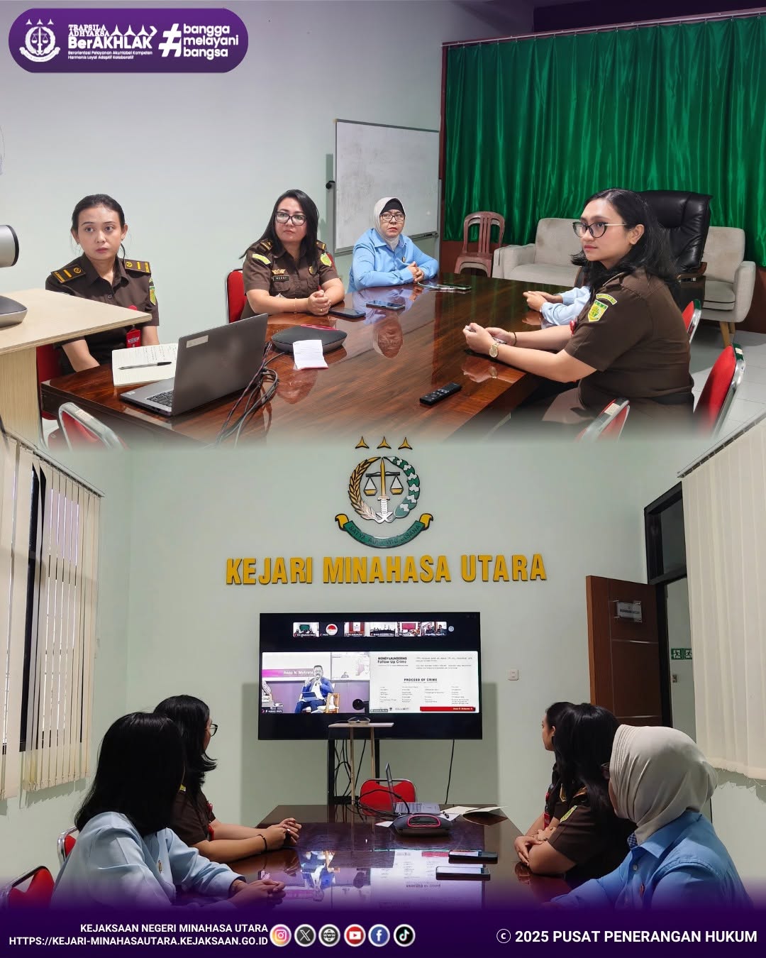 Mewakili Kepala Kejaksaan Negeri Minahasa Utara, Kepala Seksi Tindak Pidana Umum Ibu Merry C. Rondonuwu, S.H. beserta Jaksa Fungsional pada Kejaksaan Negeri Minahasa Utara mengikuti giat Zoom Meeting terkait Rapat Koordinasi Efektivitas Penegakan Hukum Tindak Pidana Pencucian Uang Dengan Memperhatikan Penilaian Resiko (Risk Based Approach) di Aula Vidcon Kejaksaan Negeri Minahasa Utara